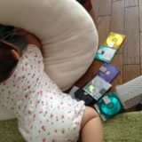 いやぁ、まめた君、相変わらず、元気いっぱい。ずりバイの進む速度は娘の約4倍、お腹を付けた状態で手足を前後にばたつかせるなど、一瞬たりとも目を離せない状況となっています。その動きっぷりが可愛すぎ (´ω`*人)