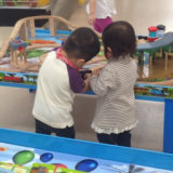 「どんぎゅりー、こりょこりょー」と、ドングリを見つけては、ころころしている様を見つめている娘。お買い物をするのは、また今度にしようとあきらめたママなのでした♪