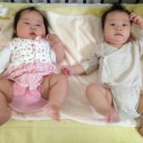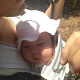 娘の写真お布団の上にタオルをひいて寝かせているのですが、そのタオルをまるでケープみたいにくしゃくしゃにして遊んでたみたいなのですよね。近くの手は隣で寝ていたパパの手です。
