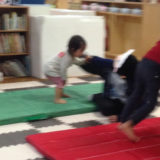 ベランダで、二人でこつこつとワトコオイルを塗って、乾燥させます♪(← 途中で違う遊びをはじめおった・・)