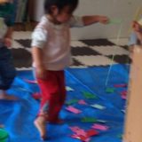 ドロ遊びをしていたり、布遊び、坂の上からローラーボードで滑り降りたりと、ここ最近都会では見られなくなった遊びに興じているお友達。