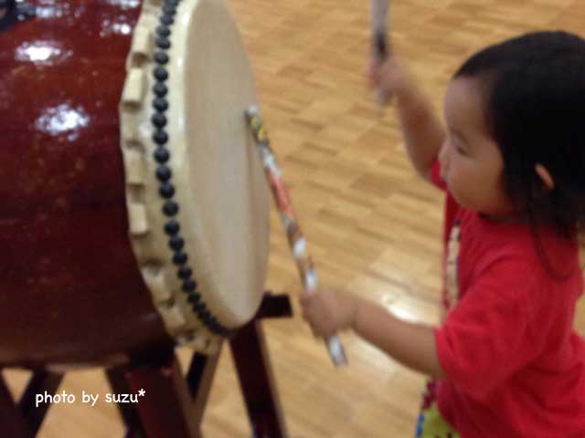 娘も、新聞紙のバチを持って、張り切ってポスポスと大きな太鼓を叩いておりました(*´∇`*)