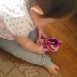それにしても、1週間ぶりにお会いしたお友達君は、ますますやんちゃぶりを発揮。机の上のものを探索しまくり、椅子の上に立ち上がって、外まで見回すのがなんとも可愛い♪ その間、一歩たりとも動いていない、娘もある意味すごい。
