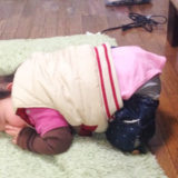 我が家の娘、娘さんは1歳、人間のご年齢にすると相当若い。最近は椅子を使って歩くことを覚え、ハイハイは全くしません。少しはハイハイをしないと、こけ方がヘタッピになると言われています。